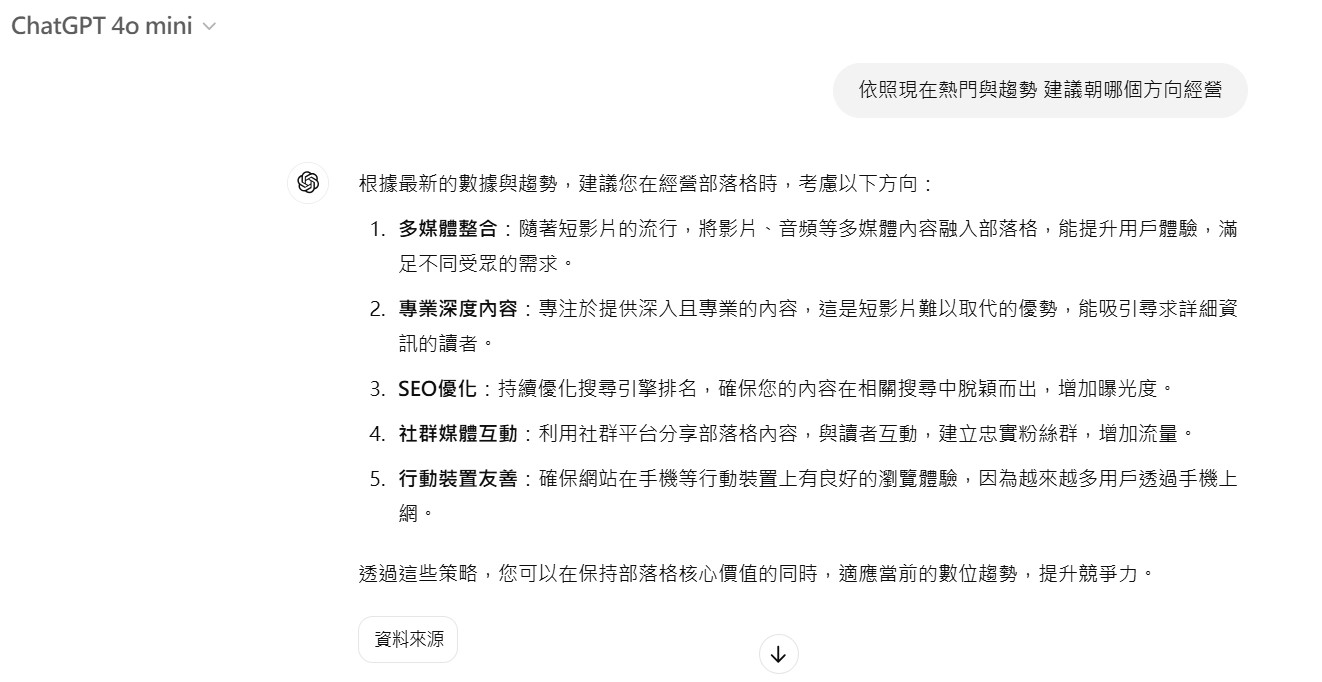 有次在設計品牌策略時,公司團隊中陷入了二元對立的爭論。AI 提供了多角度的建議,甚至把看似矛盾的想法整合成創新方案,最終讓我們推出一個前所未有的品牌活動,反響熱烈。簡單來說就是可以從不同角度去這件事情。